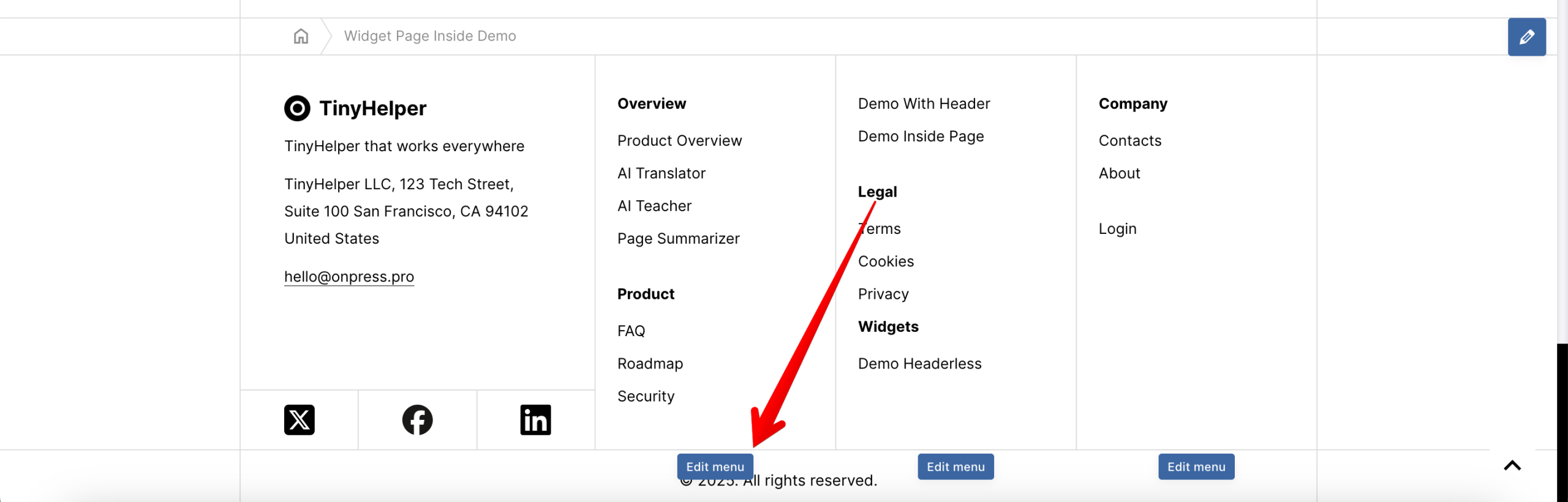Наведите курсор на подвал и нажмите Edit menu: