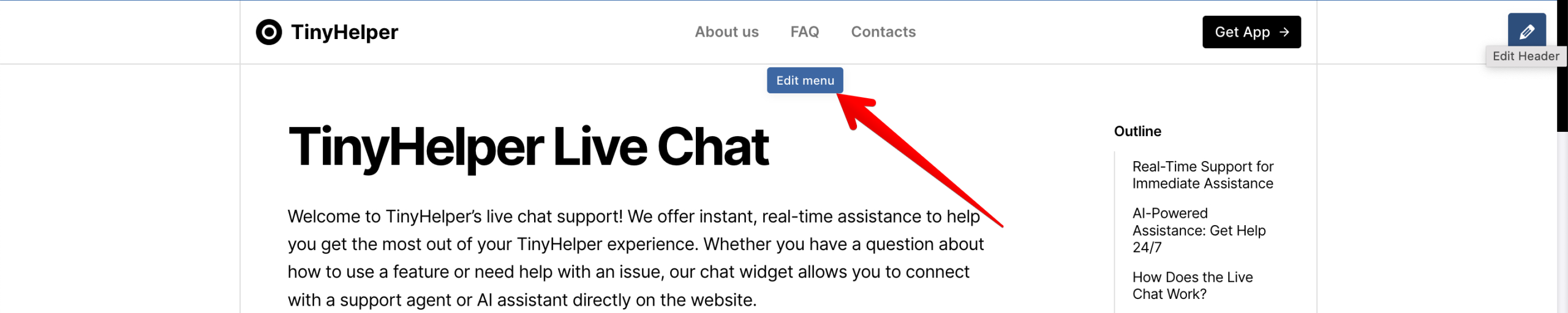 Наведите курсор на меню и нажмите Edit menu: